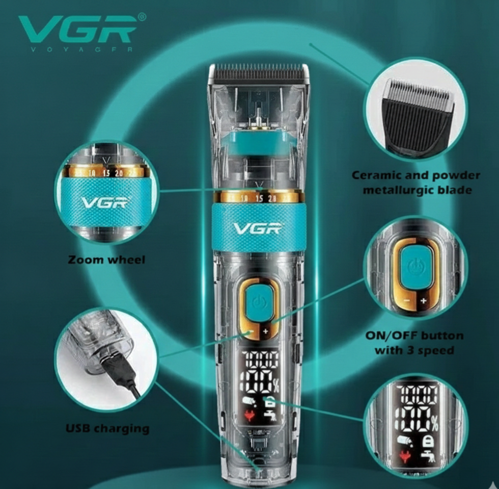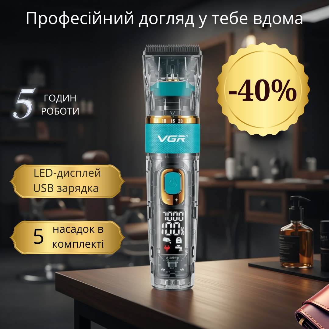 LED-дисплей, зручна форма та повна комплектація роблять VGR V-695 надійним інструментом для ідеальної стрижки щодня.